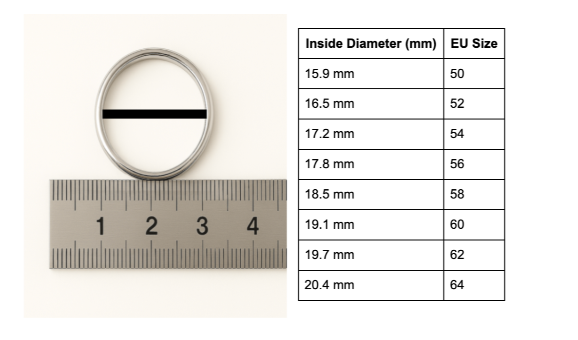 Use a ruler (with mm) or digital caliper to measure the inside edge to inside edge straight across.