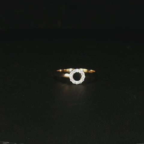 A contemporary yet timeless ring featuring a striking, off-set circle meticulously set with shimmering brilliant-cut diamonds. Crafted in polished, the streamlined band offers a delicate foundation to the luminous focal point. This piece is a sophisticated choice for those who appreciate modern, minimal design with undeniable sparkle.