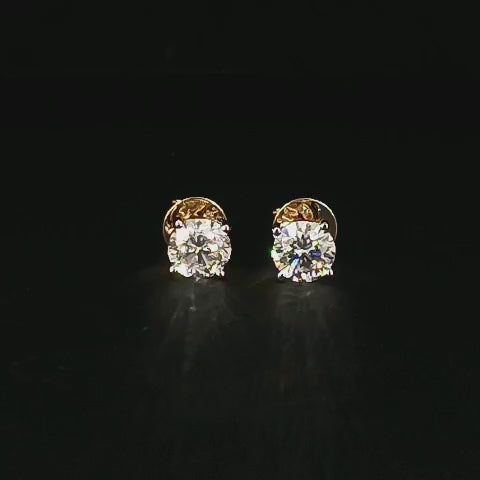 The quintessential fine jewellery piece: a breathtaking pair of round-cut diamond solitaire earrings. Set securely in a four-prong basket of rich, yellow gold, the expertly cut diamonds unleash maximum fire and scintillation. These studs are the embodiment of enduring elegance and are an absolute essential for every discerning collector.