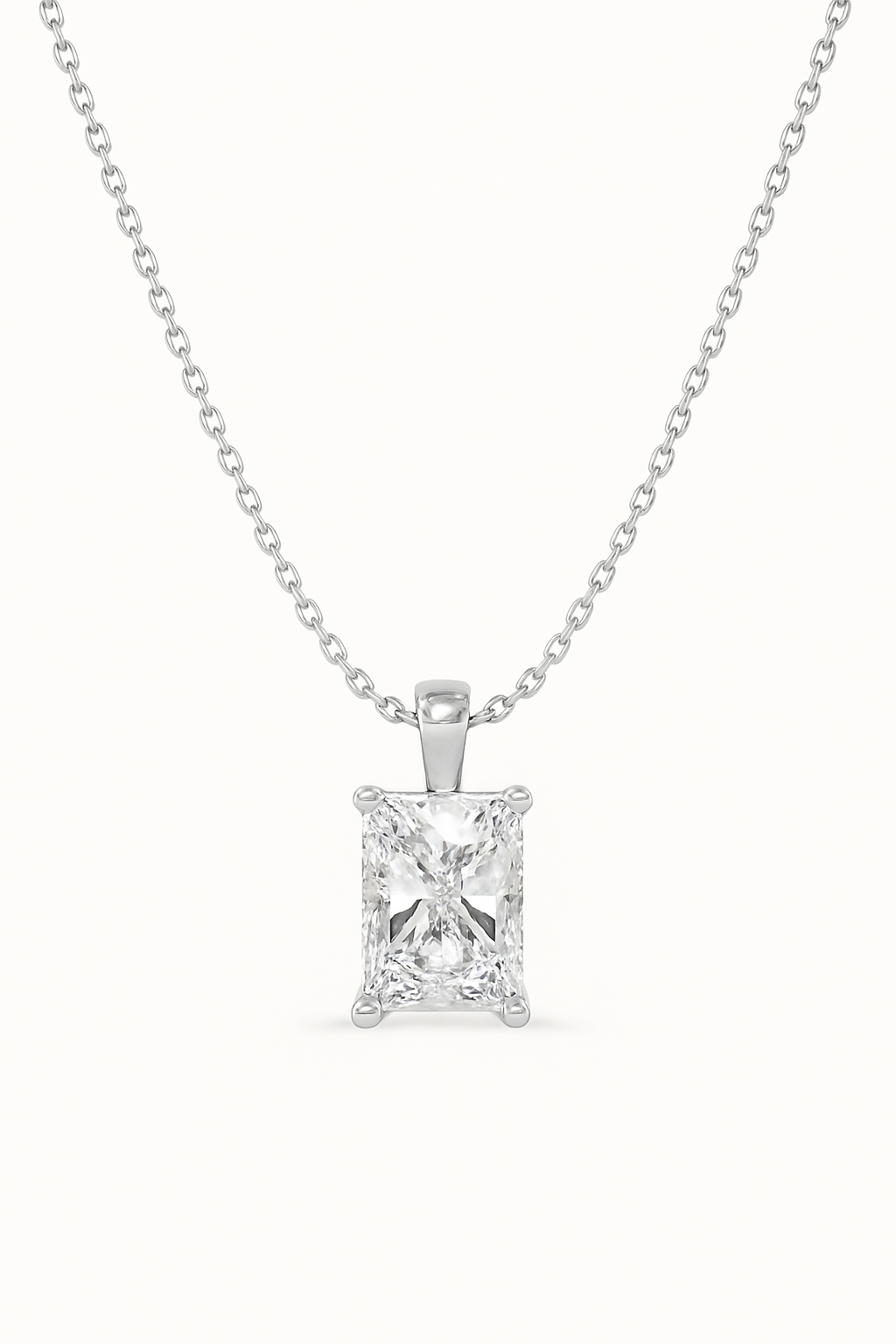 Refined. Effortless. Timeless. Radiant Grace is a celebration of quiet elegance and luminous beauty. Featuring a stunning radiant-cut diamond set in polished gold, this pendant captures and reflects light with every movement a true embodiment of grace in motion.