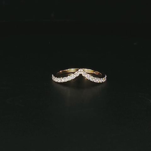 Elegant and contemporary, this V-shaped diamond ring is crafted in luminous white gold and set with a row of sparkling round-cut diamonds. The sleek chevron design adds a modern edge, while the brilliance of the diamonds delivers timeless beauty. Perfect as a contour band, wedding ring, or a stylish stackable piece, this ring gracefully enhances any look with understated sophistication.
