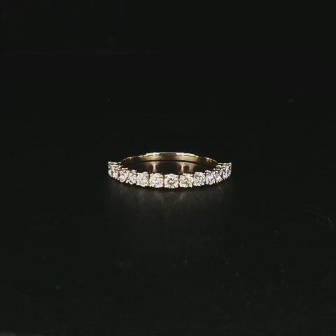 A sleek and timeless half-eternity band crafted in yellow and white gold, featuring a row of brilliant round-cut diamonds. Perfect for stacking, weddings, or everyday elegance.